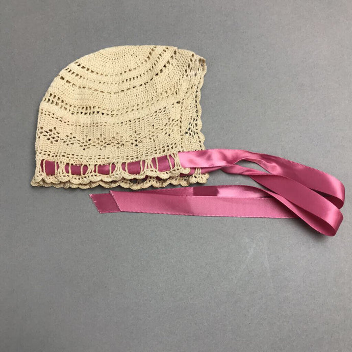 Vintage Hand Crochet Off White Baby or Doll Bonnet (5")
