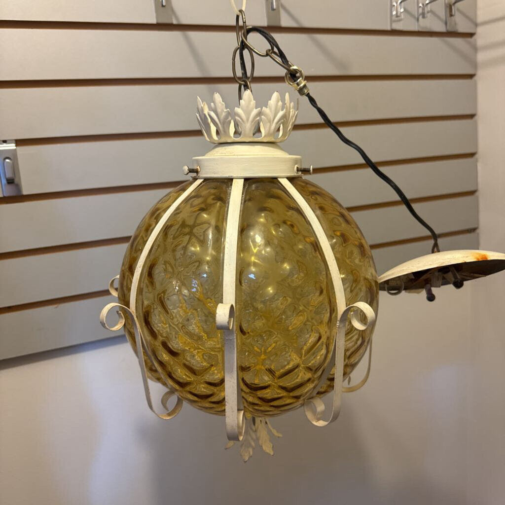 Amber Glass Globe / Metal Light Fixture (15")