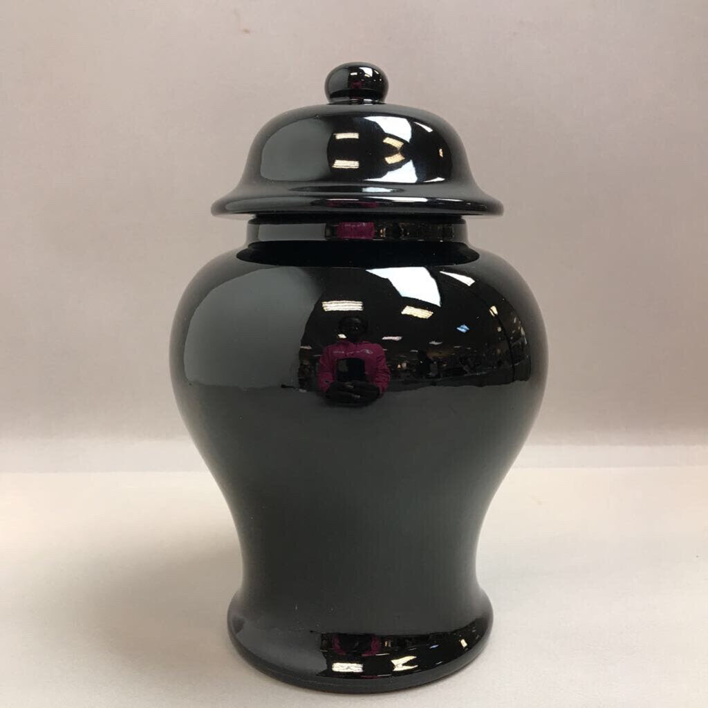Black Ceramic Ginger Jar with Lid (10.5in)