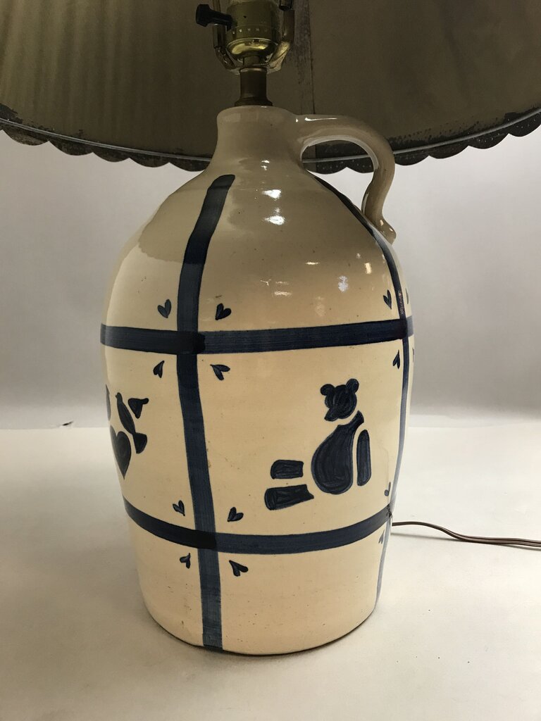 Blue Heart Stoneware Pottery Jug 3-Way Lamp with Blue Shade (25")