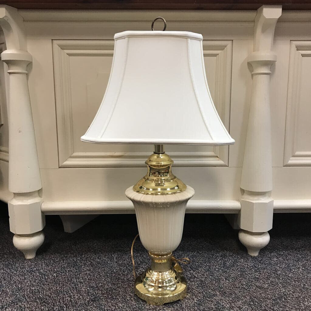 Cream Porcelain & Brass Table Lamp (30")(2 Available)