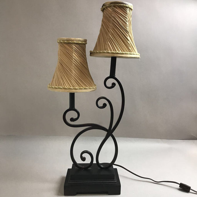 Black Wrought Iron Double Light Lamp Beige Pleated Shades (26")