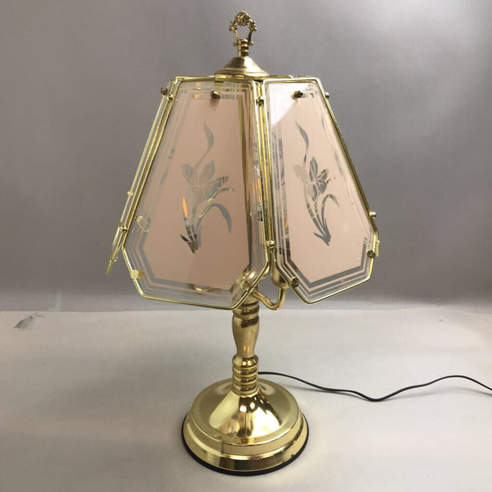 Brass Touch Glass 6 Panel Lamp Floral Design (23")(As Is)