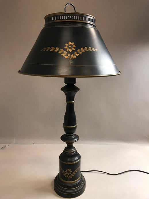 Vintage Black with Gold Accents Metal Toleware Lamp (33")