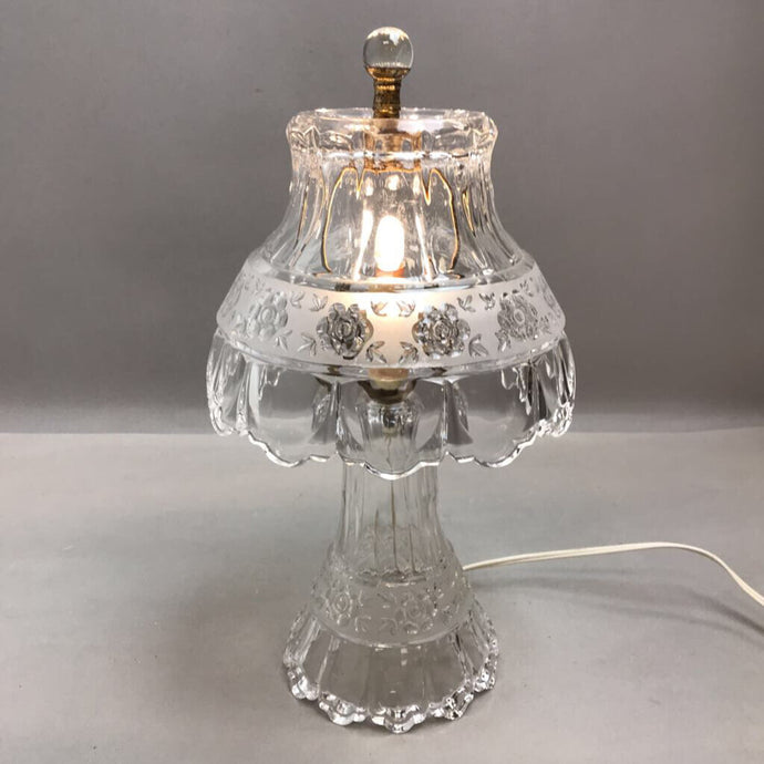 Vintage Crystal Clear Cut Glass Boudoir Table Lamp Flowers 14" Germany