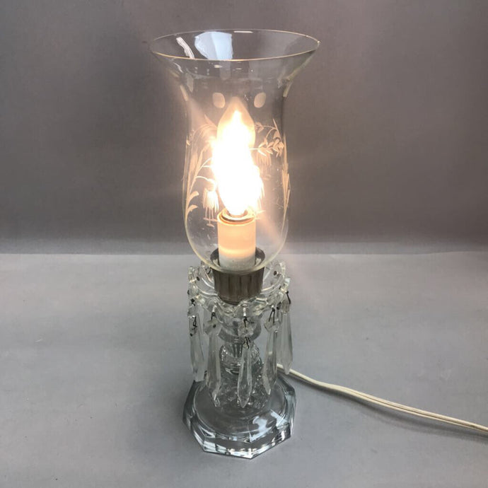 Vintage Crystal Parlor Lamp with Prisms 7 Etched Chimney (15")