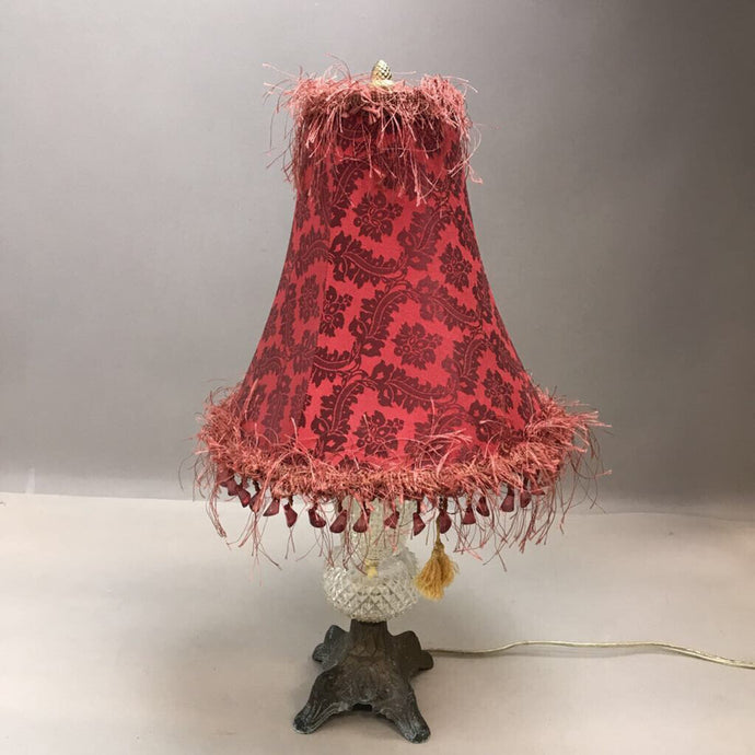 Vintage Crystal Table Lamp with Red Shade (20")