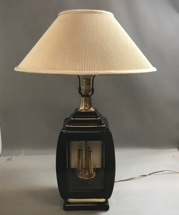 Asian Black Lacquer 3-Way Lamp With Glass Panels (29")