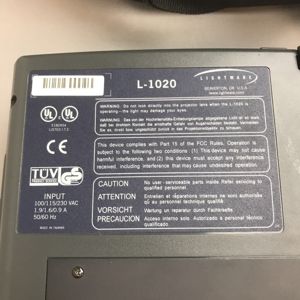 Lightware L-1020 Projector (1024x768; RCA/S-Vid/VGMA) w/ Case, Manual, Accessories (~13x16x10)