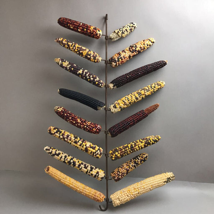 Antique Iron Metal Corn Dryer with 16 Indian Corn Ears(29")