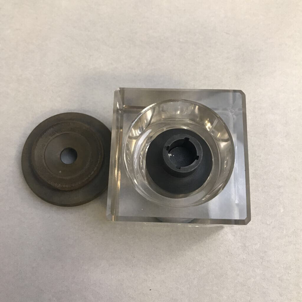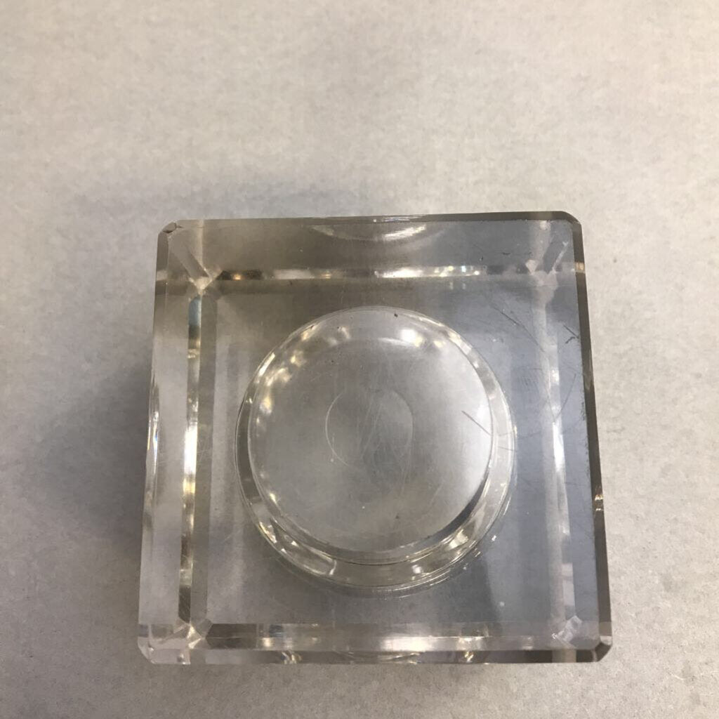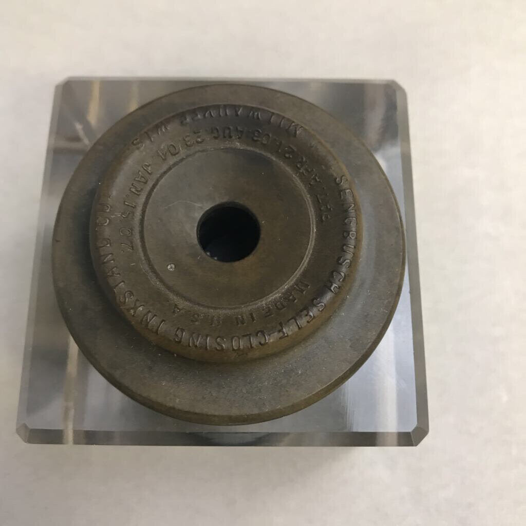 Antique 1907 Sengbusch Glass Inkwell Stand with Bakelite Lid (3x3)