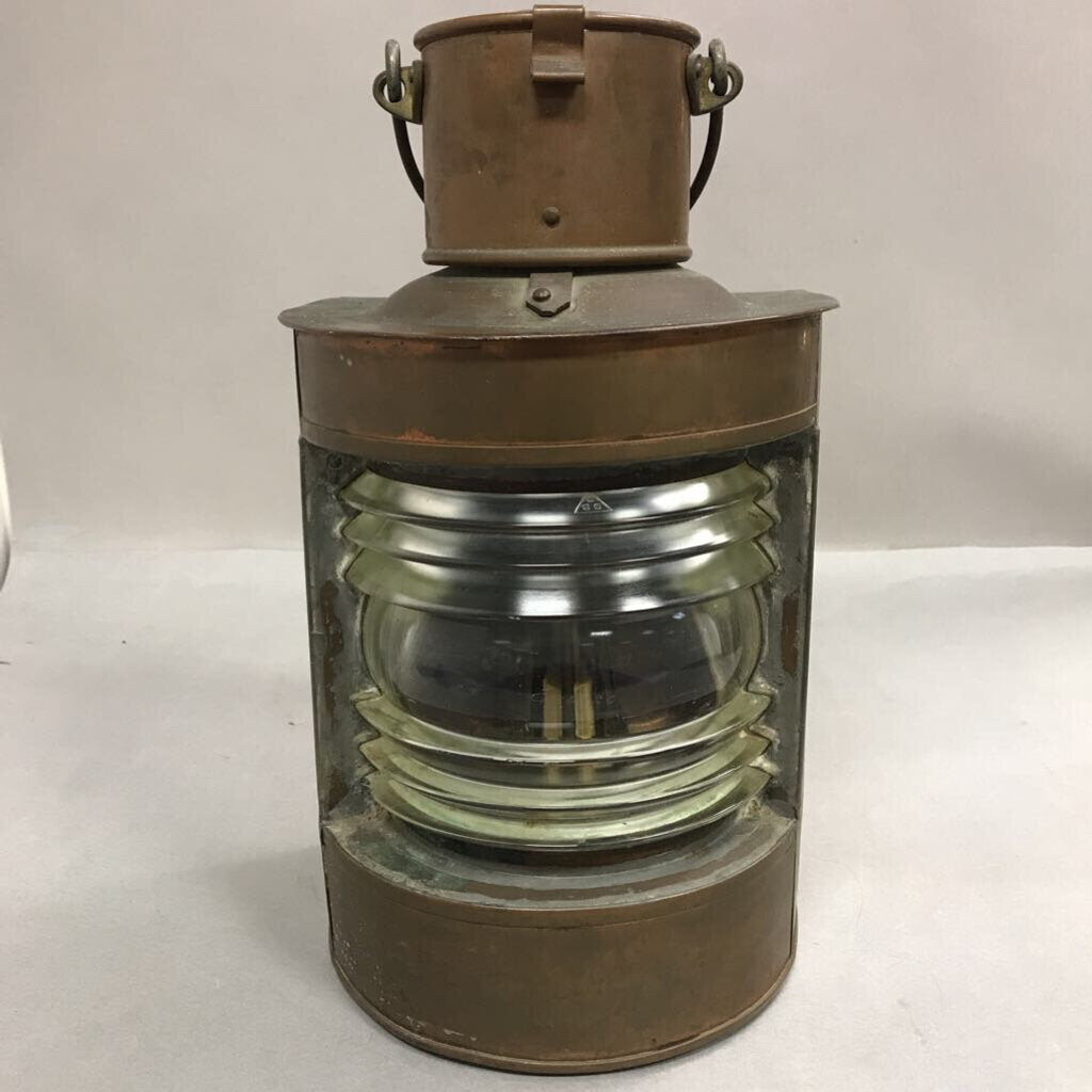 Antique Copper Ships Oil Lantern Clear Glass Lens (14")