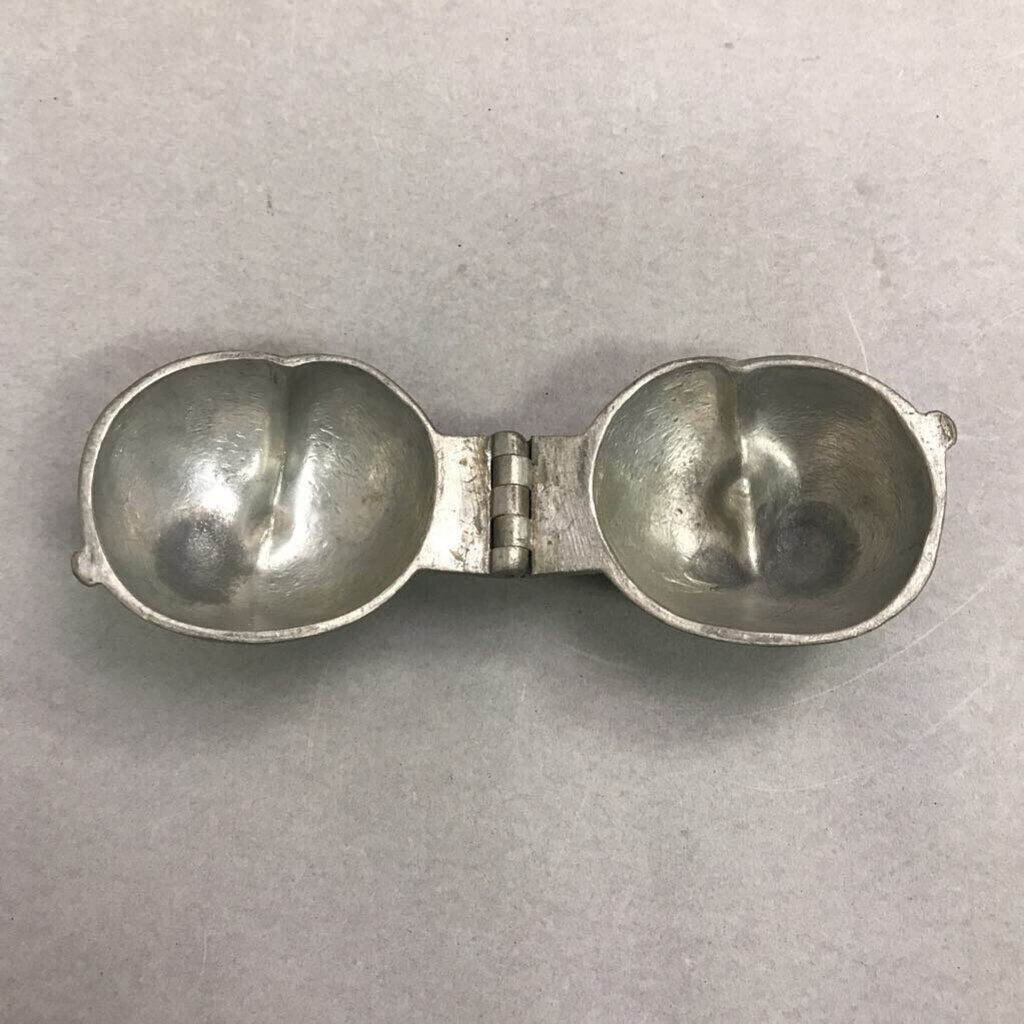 Antique Primitive Pewter Peach Fruit Ice Cream Mold Hinged Farmhouse Country (4"