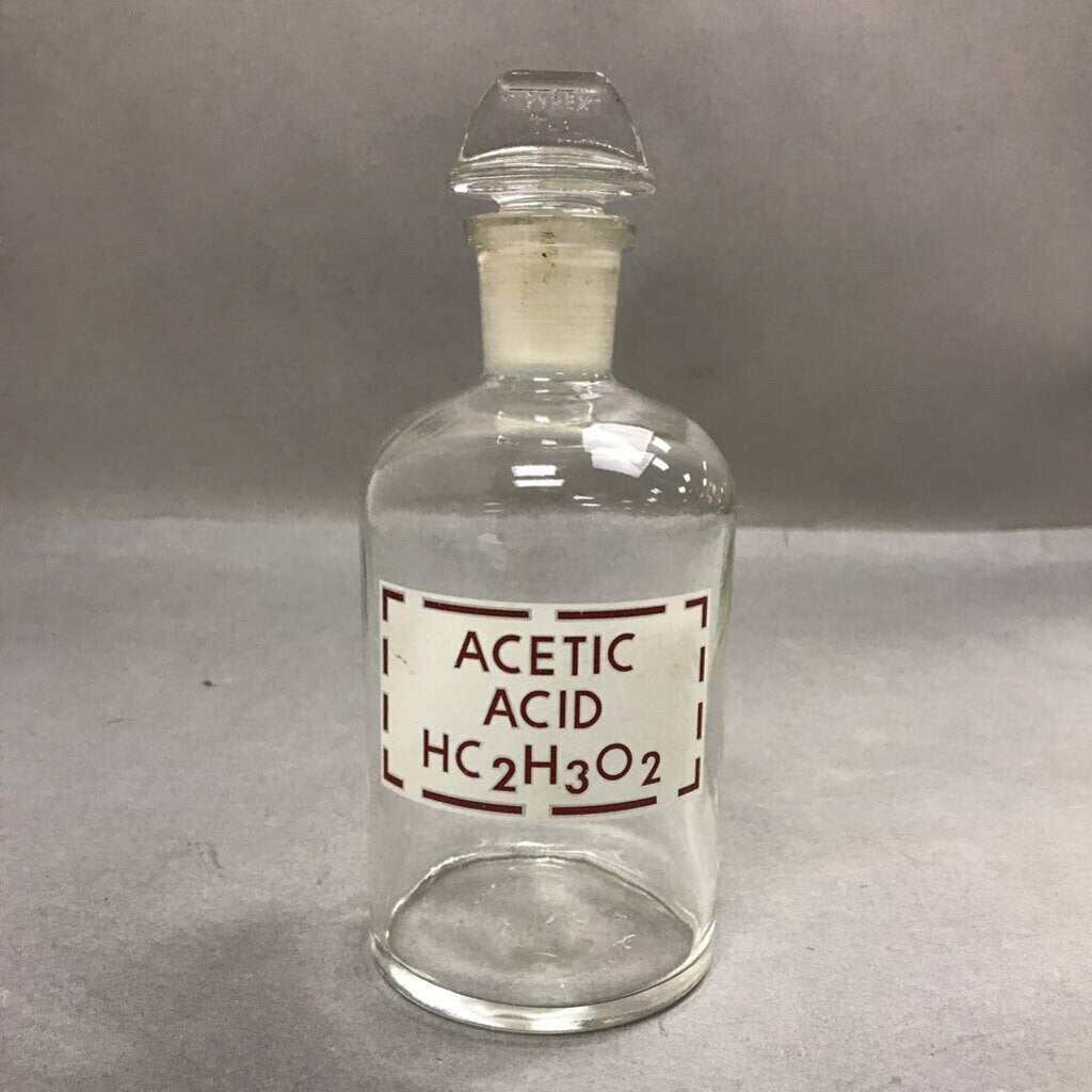Antique Pyrex Acetic Acid HC2 H3 O2 Chemist Lab Bottle with Stopper (8")