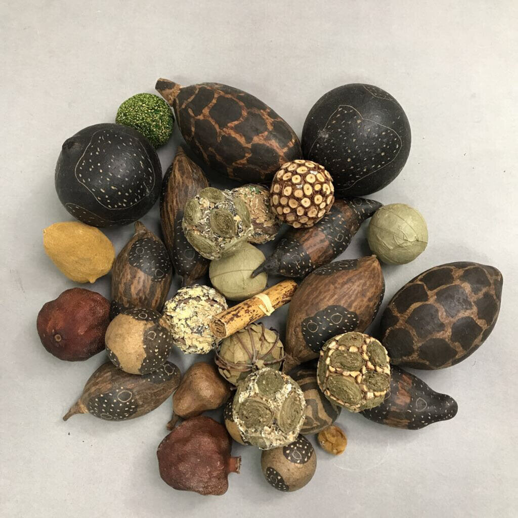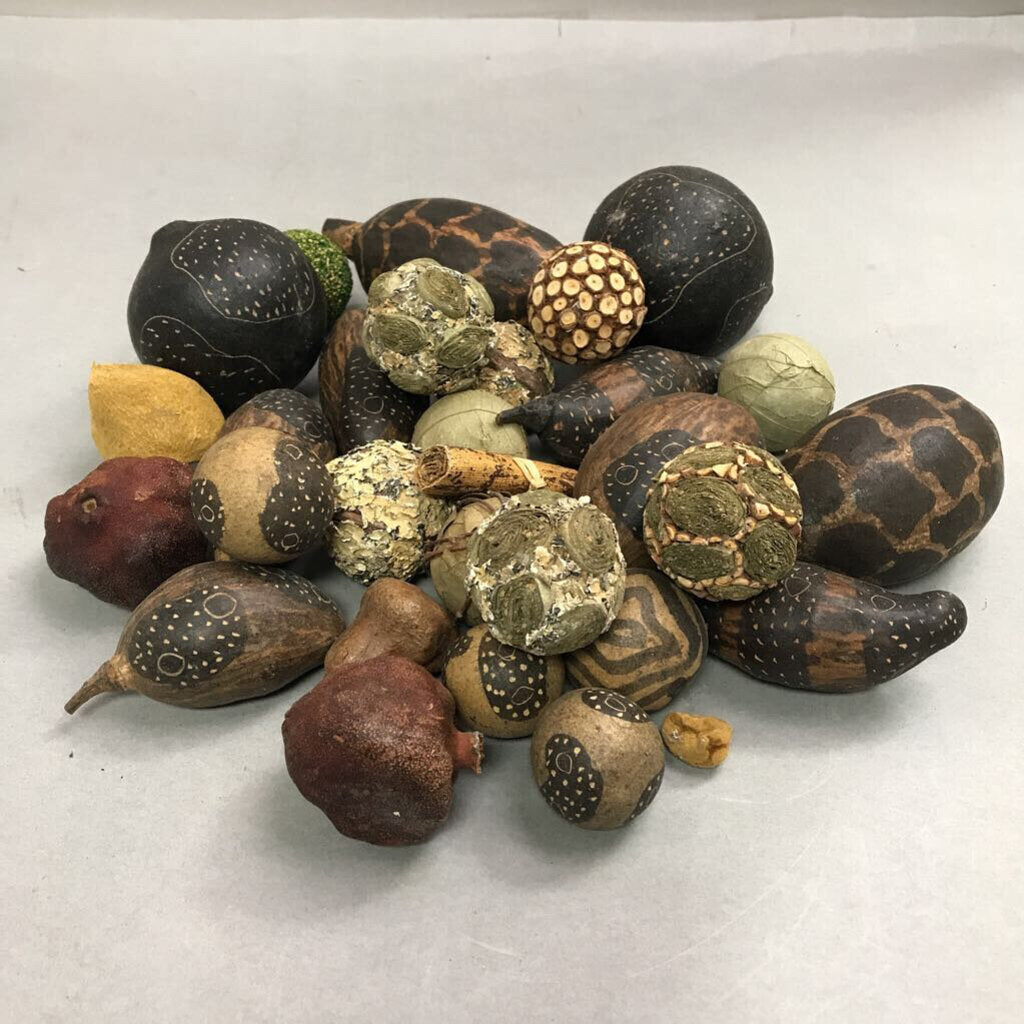Assortment of African Hand Carved Gourds/Decorative Balls