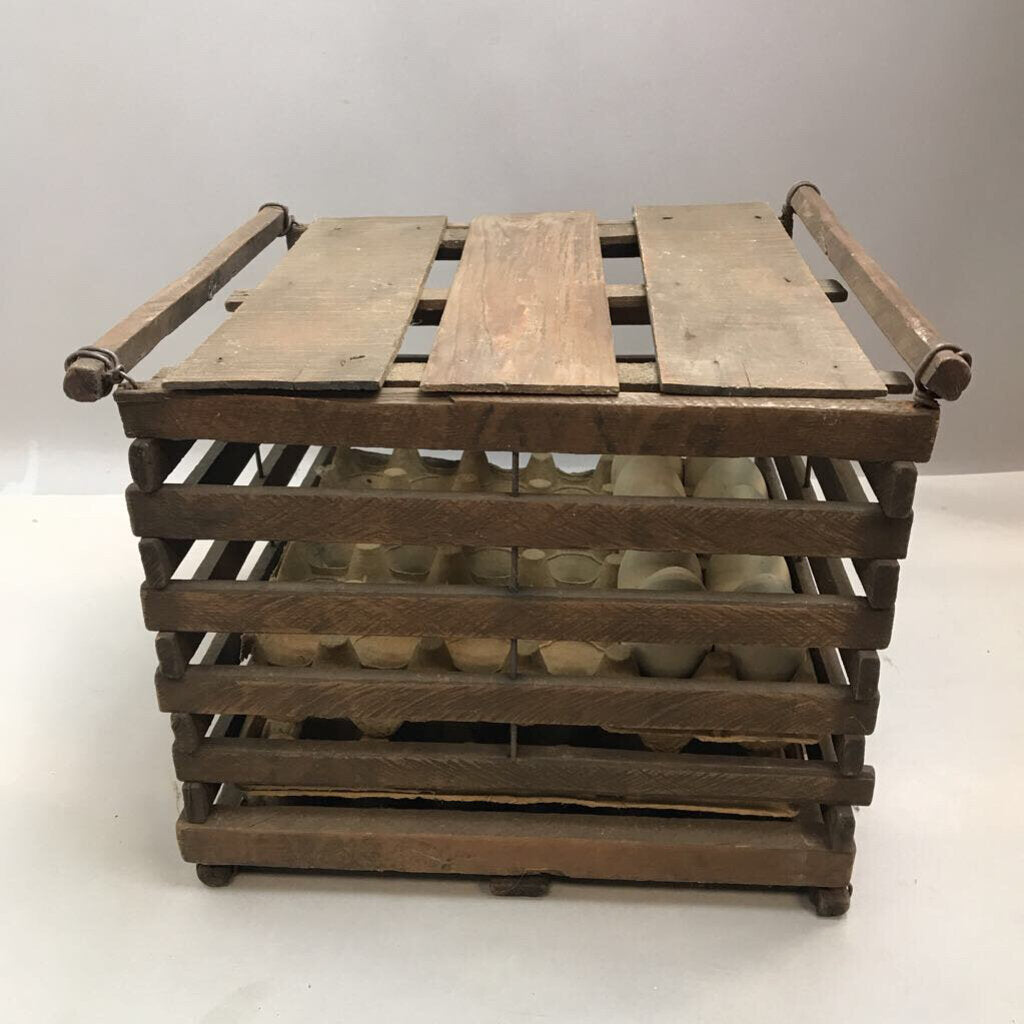 Vintage Egg Crate w/ Wooden Eggs (12x13x13)