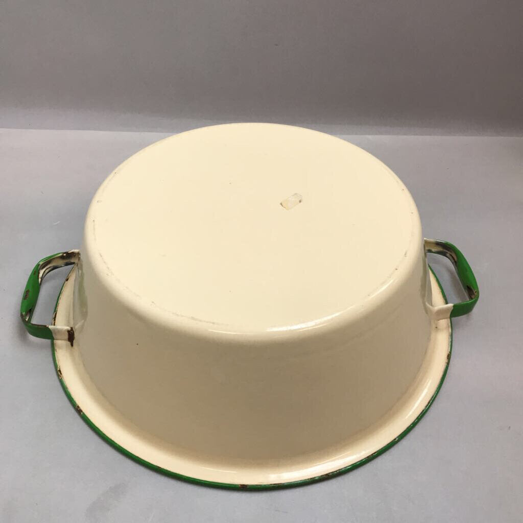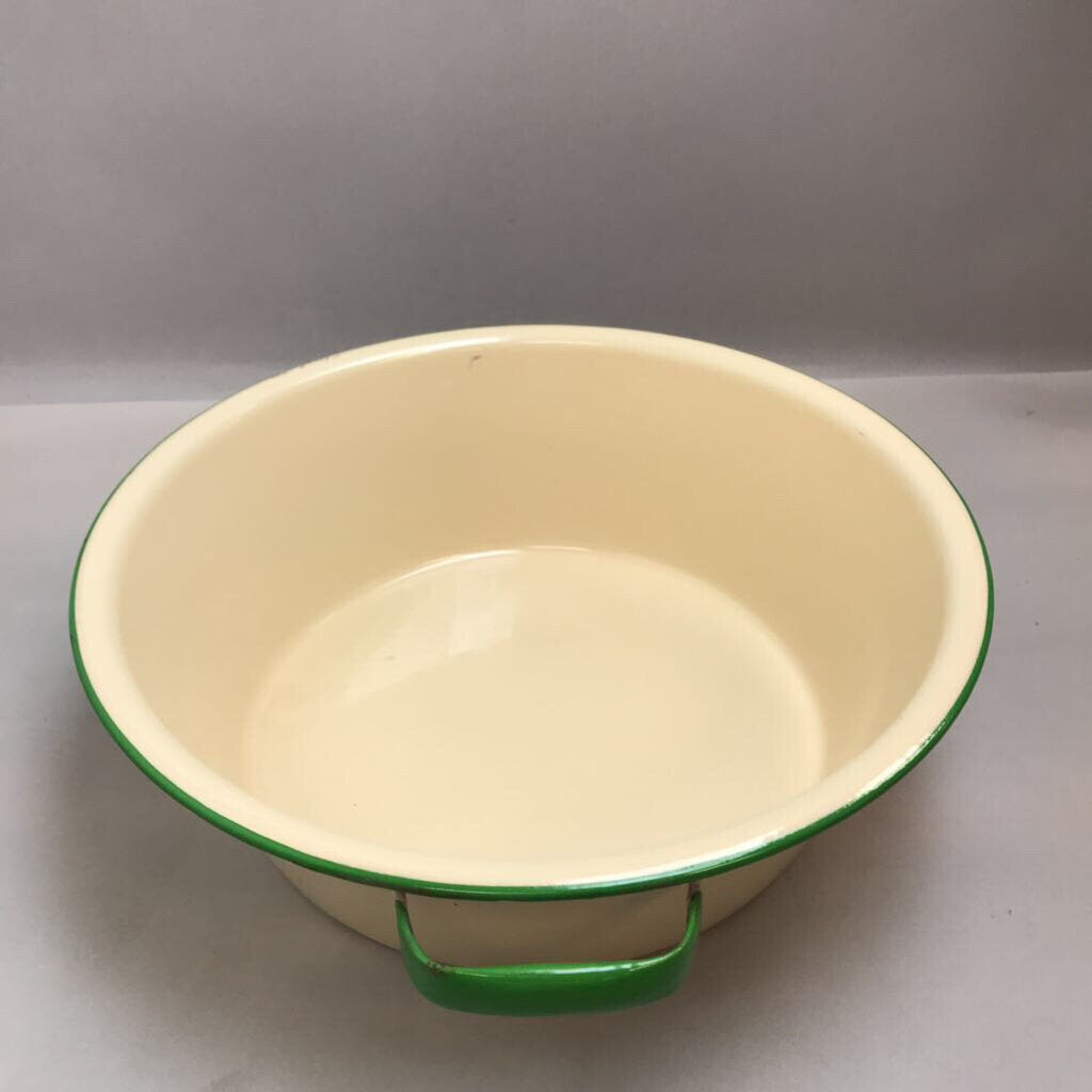 Vintage Enamelware Yellow with Green Trim Pan with Handles (5x15)
