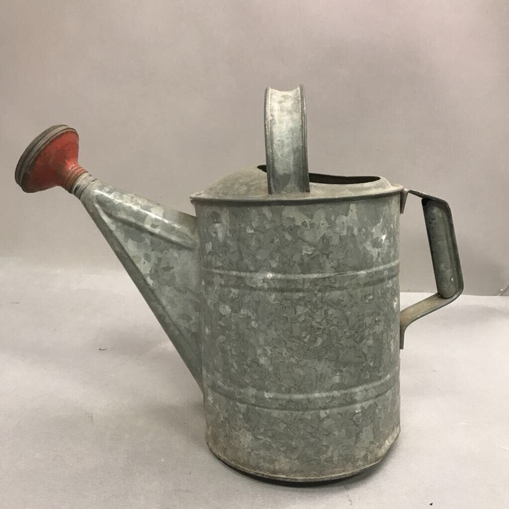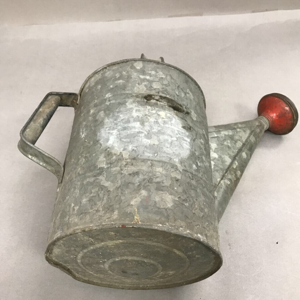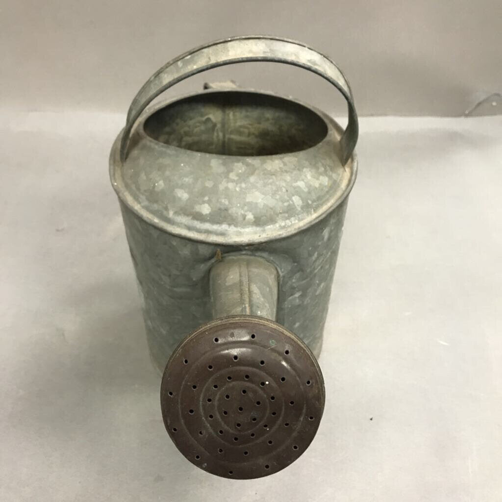 Vintage Galvanized Garden Water Sprinkling Can with Brass Nozzle on Spout (10")