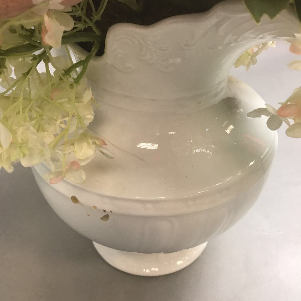 Vintage Ironstone White Pitcher with Summer Flower Arrangement (10")