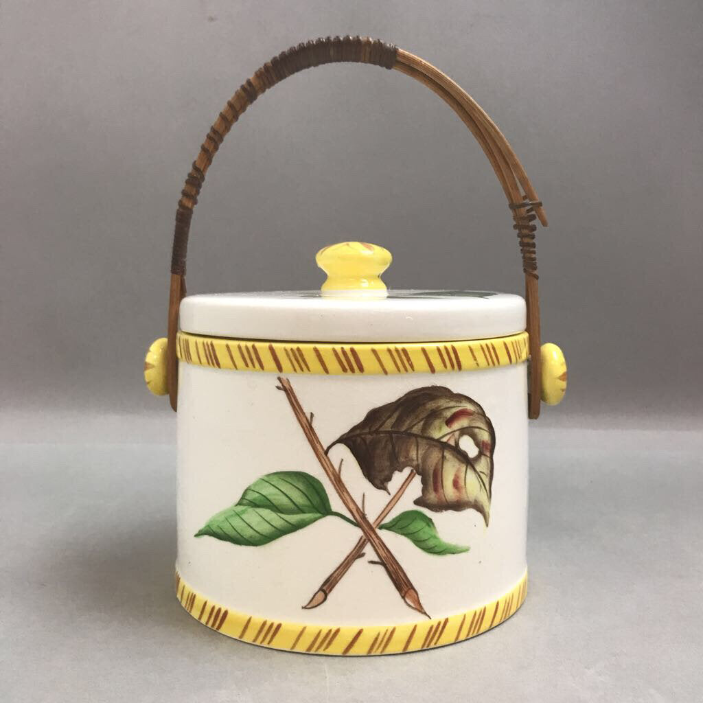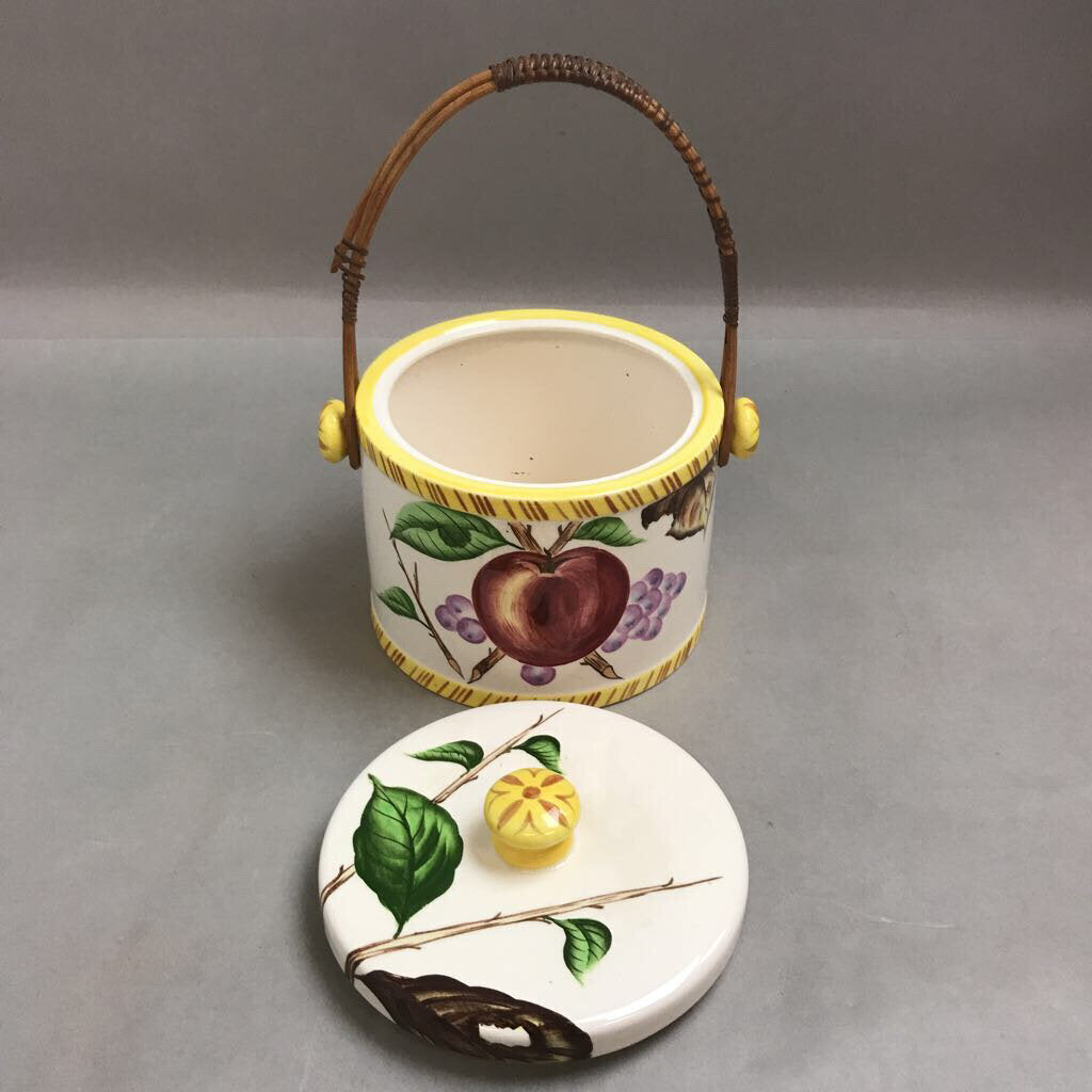 Vintage Miyao Cookie Jar with Wicker Handle (5in)