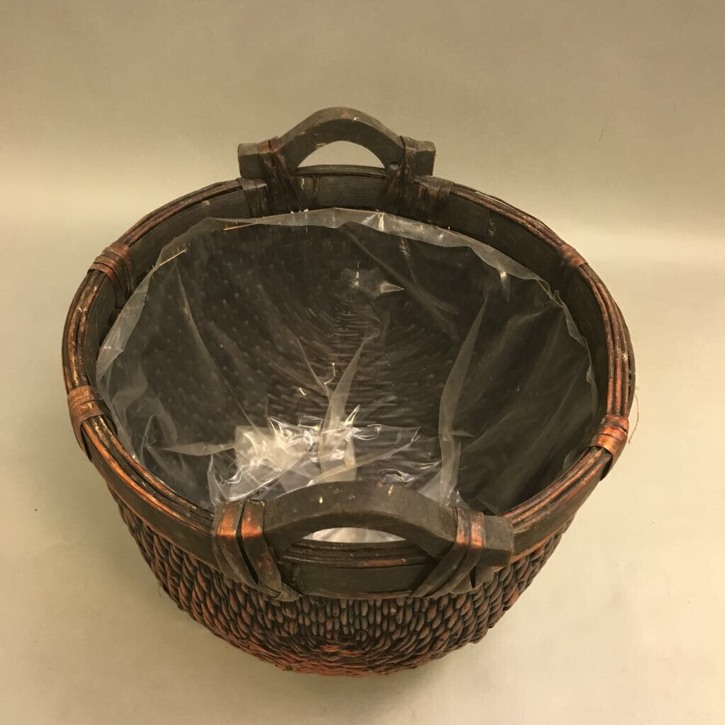 Vintage Weaved Straw & Wood Wicker Basket with Handles (9")