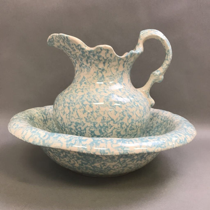 Vintage Blue Spongeware Basin & Bowl Set (10")
