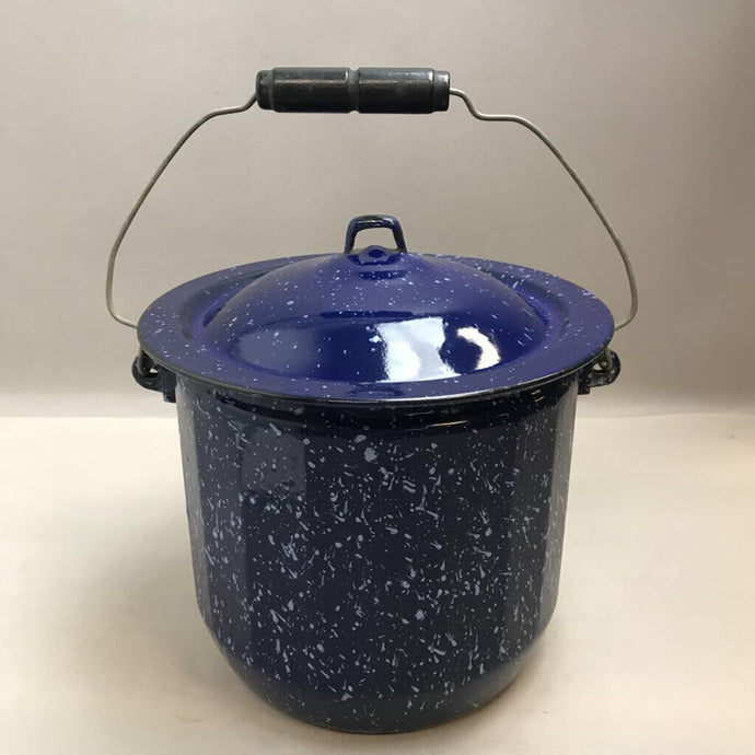 Vintage Dark Blue Speckled Paneled 3 Gallen Granite Ware Pail with Lid (9")