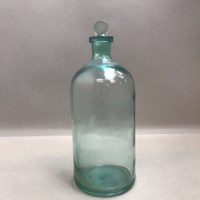 Antique green glass Mineral Water Bottle w/Stopper (12.5x5") "G" on Bottom