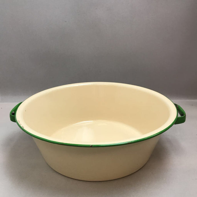 Vintage Enamelware Yellow with Green Trim Pan with Handles (5x15)