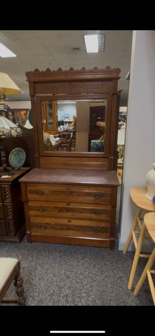 Antique Walnut 3 Drawer Dresser w/Mirror (74x40x19)