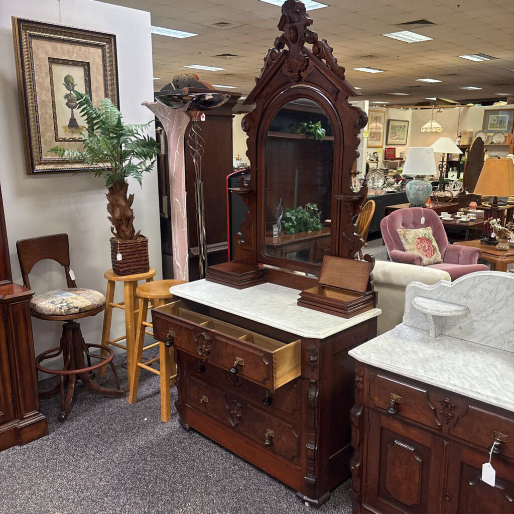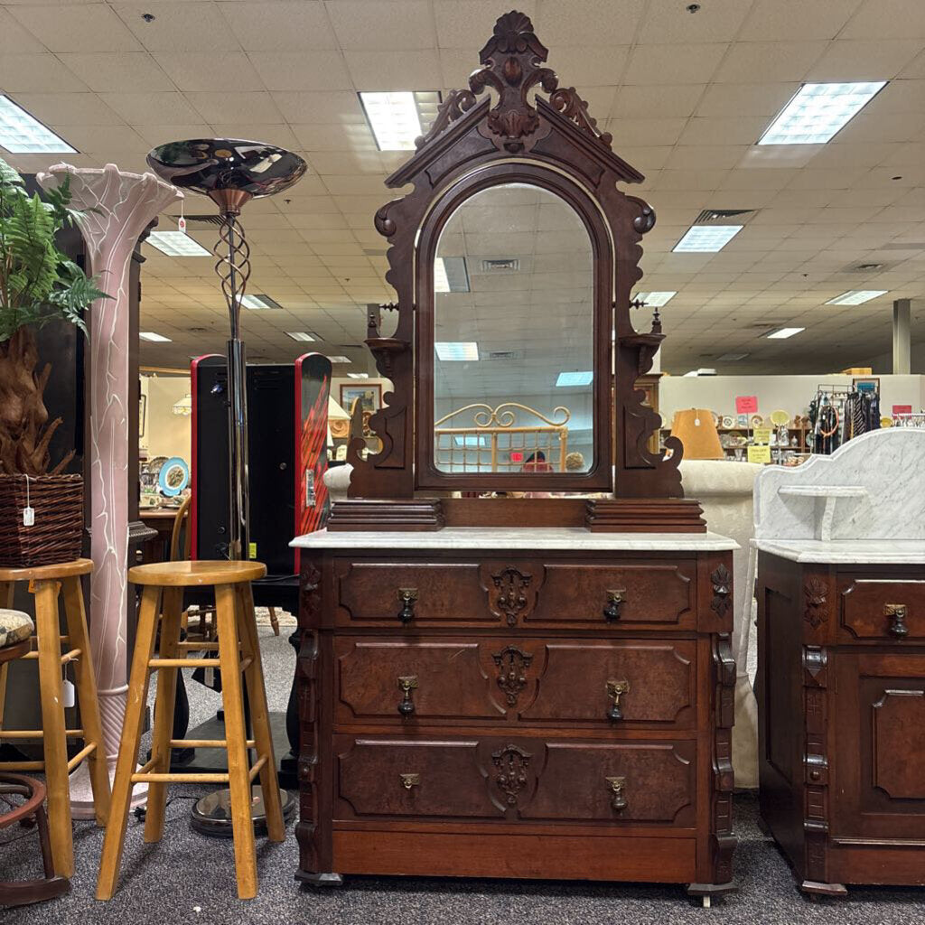 Antique Walnut Dresser w/Mirror/Marble Top (87x40x21)