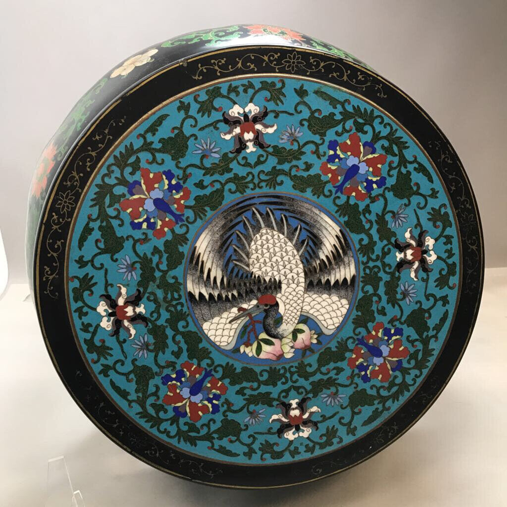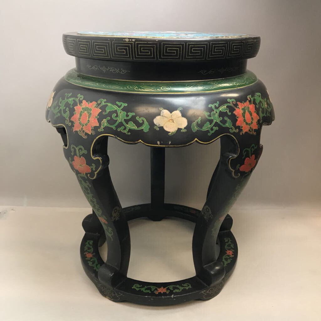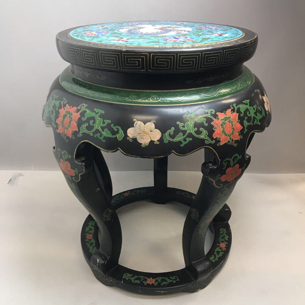 Chinese Cloisonne Stool, Crane & Painted Florals (~21x19x19)