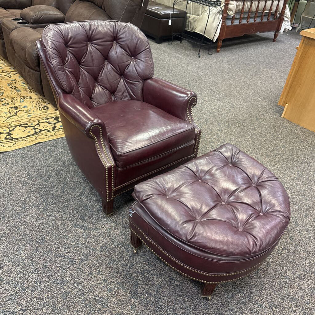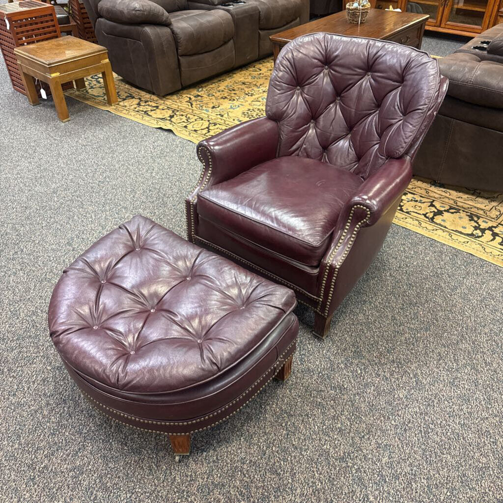 Lonestar Leather Red Chair (24x31x34) w/Ottoman