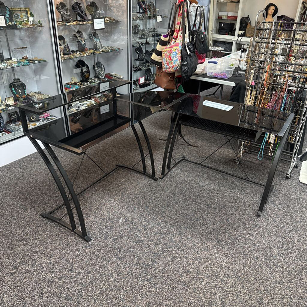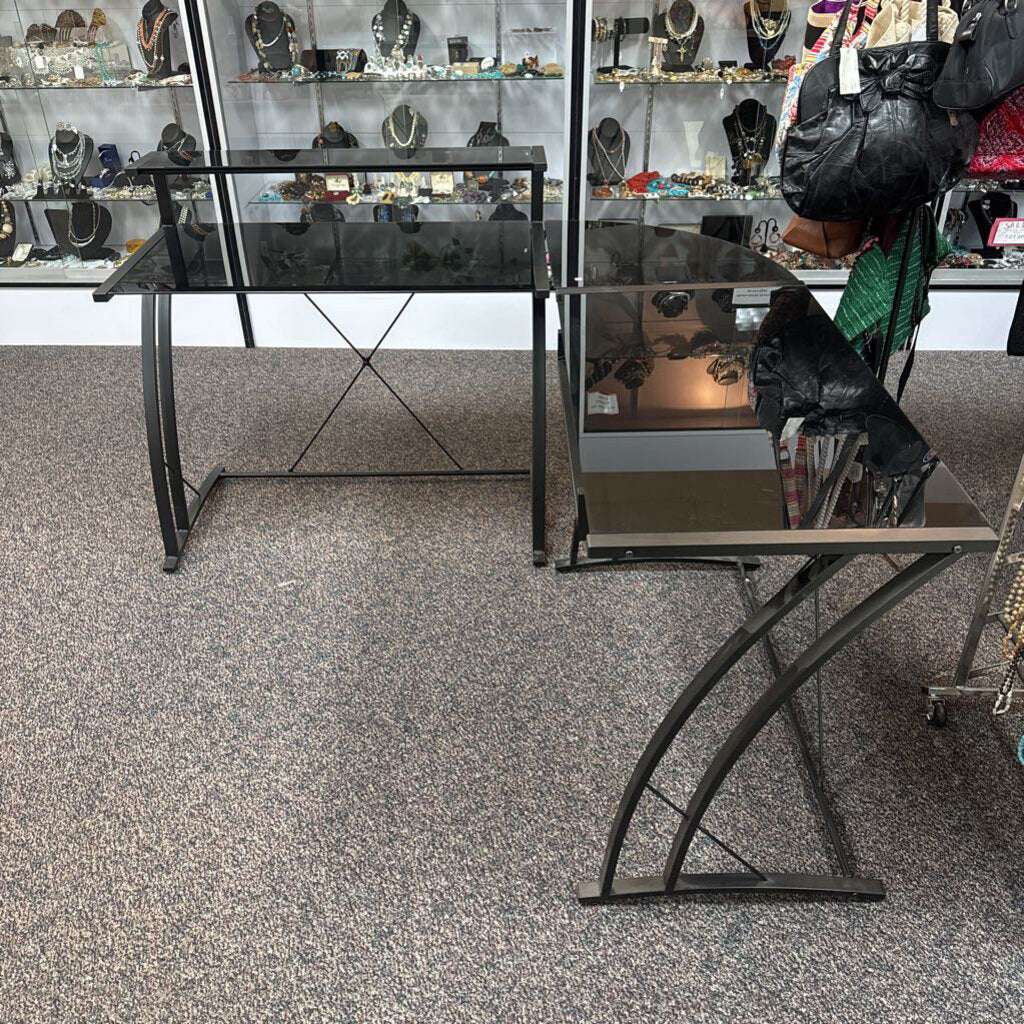 Metal / Glass L Desk (37x59x57)