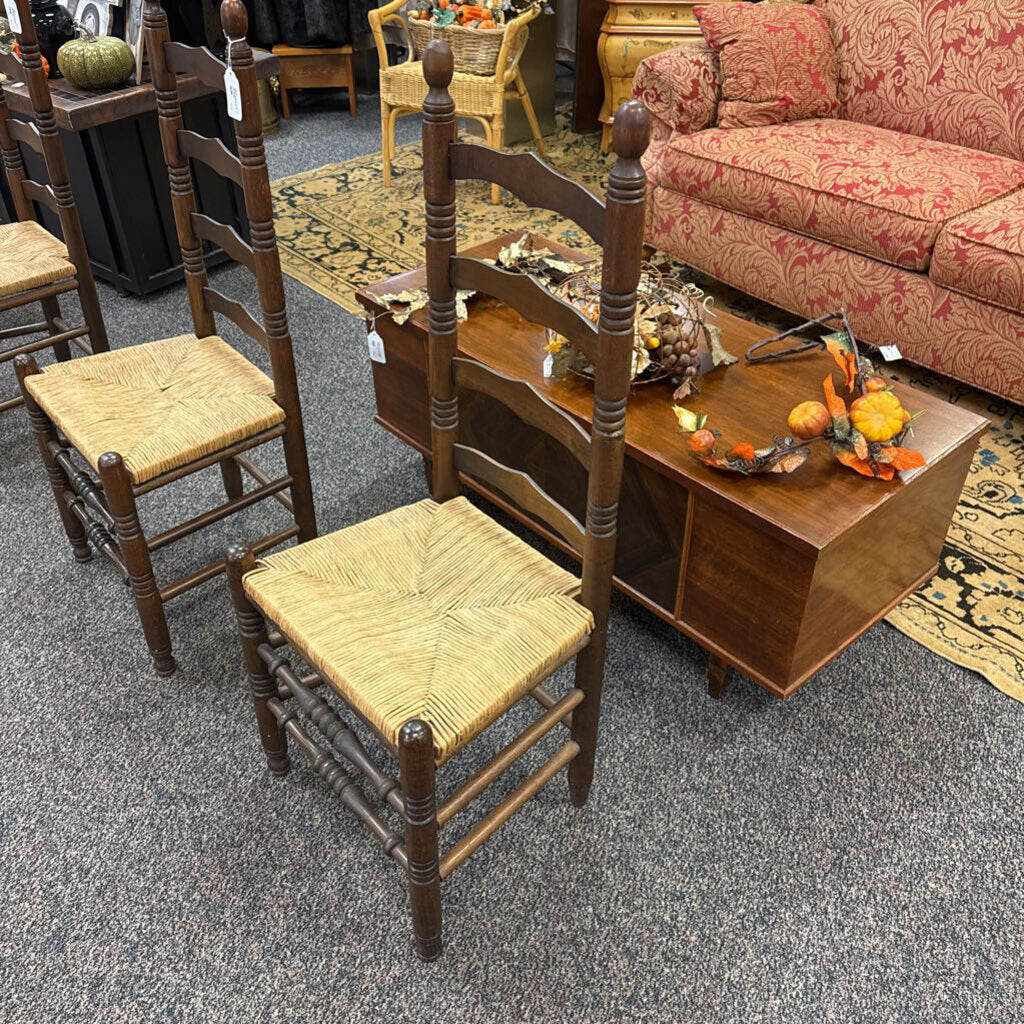 Walnut Ladder Back Rattan Seat Chair (42x18x16)