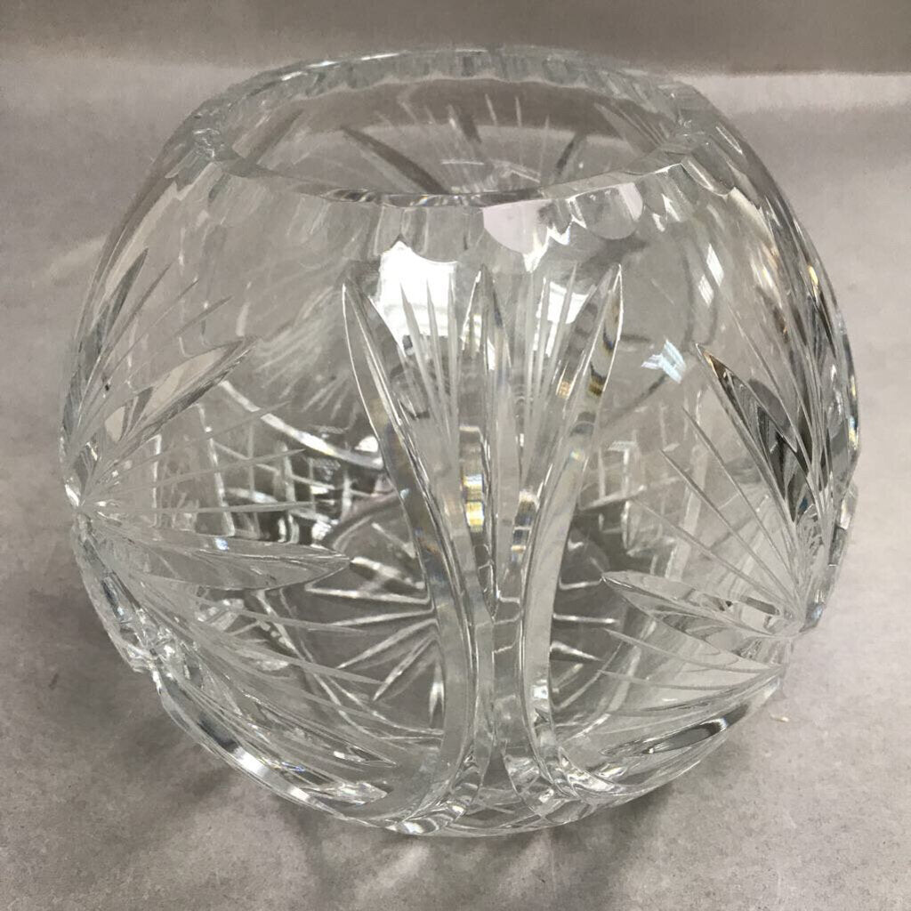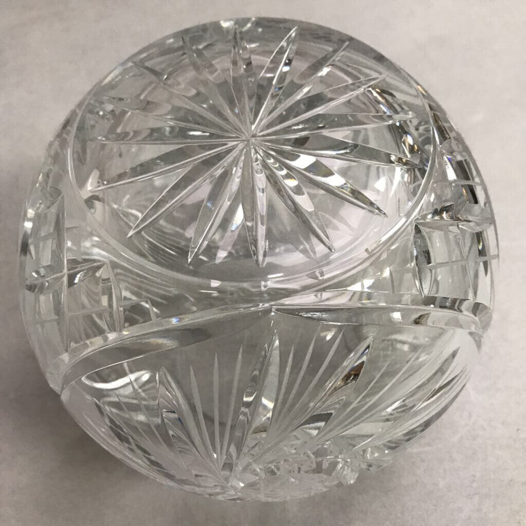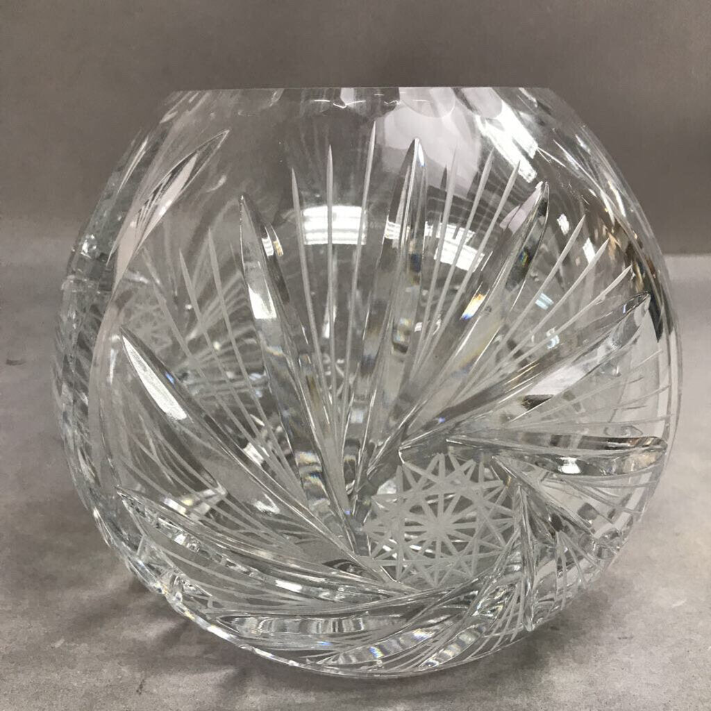 24% Lead Crystal Rose Bowl "Pinwheel" Design Hand Cut Poland (6.5")