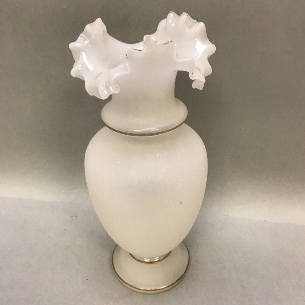 Anntique Hand Blown Bristol Glass Vase with Ruffled Edge (10")