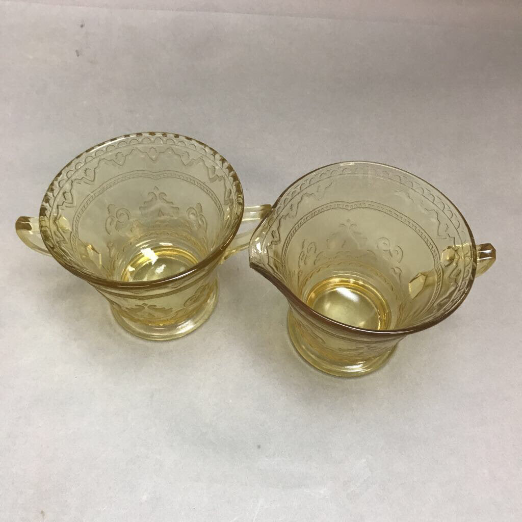 Antique Indiana Federal Madrid Amber Yellow Glass Cream and Sugar Set (3.5in) (Set of 2)