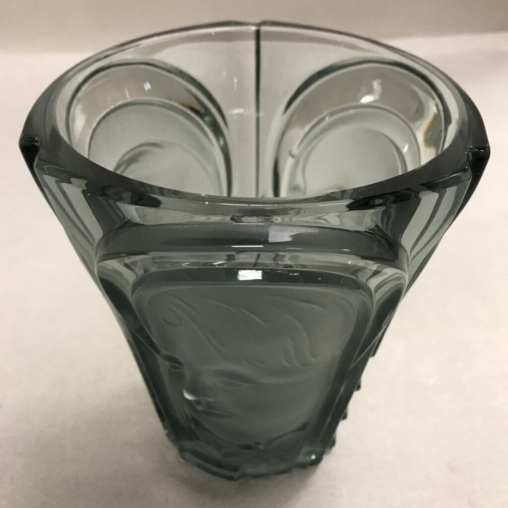 August Walther & Söhne Art Deco Glass Vase 3 Faces Man Woman Child Germany (7")