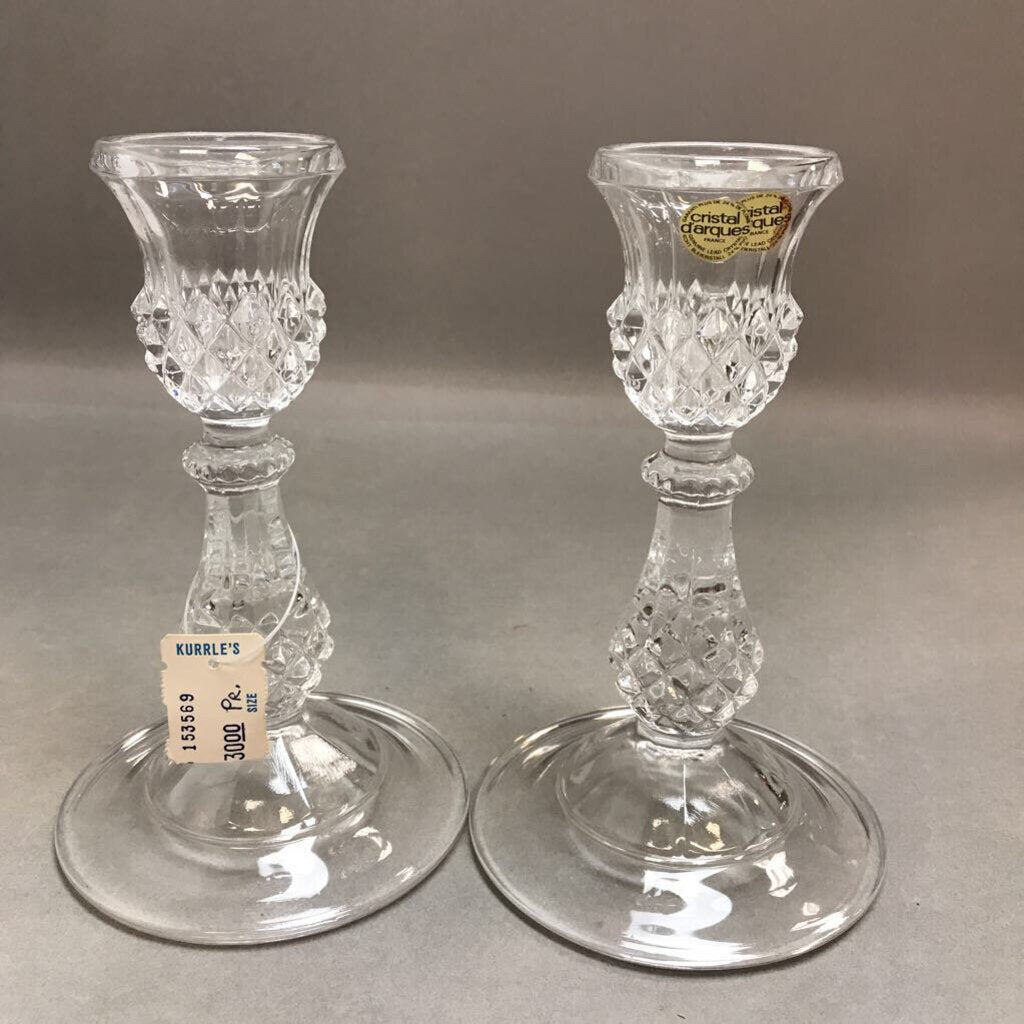 Crystal Glass Candle Holder Maintenon Cristal D'Arques Set with Box (7in) (Set of 2)