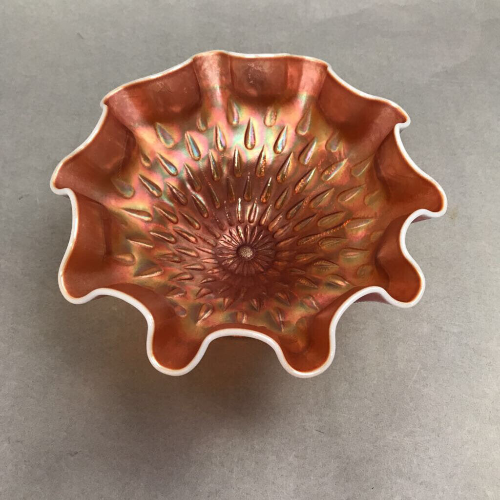 Dugan Carnival Glass Opalescent "Raindrops" Footed Bowl (4x8x8) (As-Is)