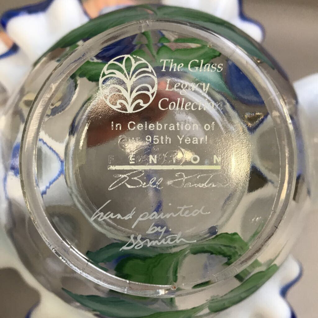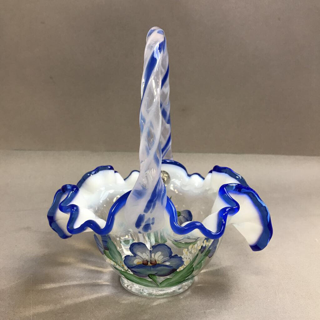 Fenton Cobalt Overly Hand Painted Legacy Collection Basket-Bill Fenton (7")