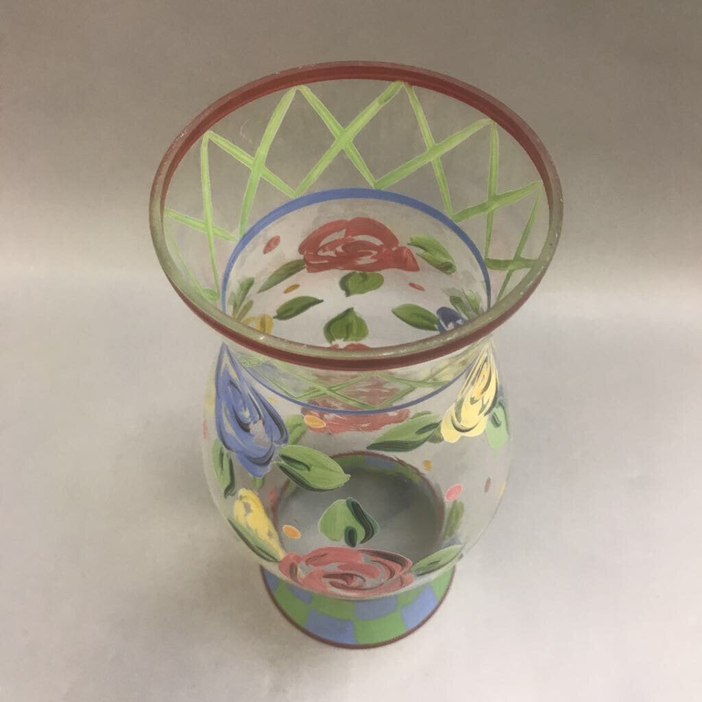 Tracy Porter Hand Painted Floral Hurricane Glass Candle Shade (12")