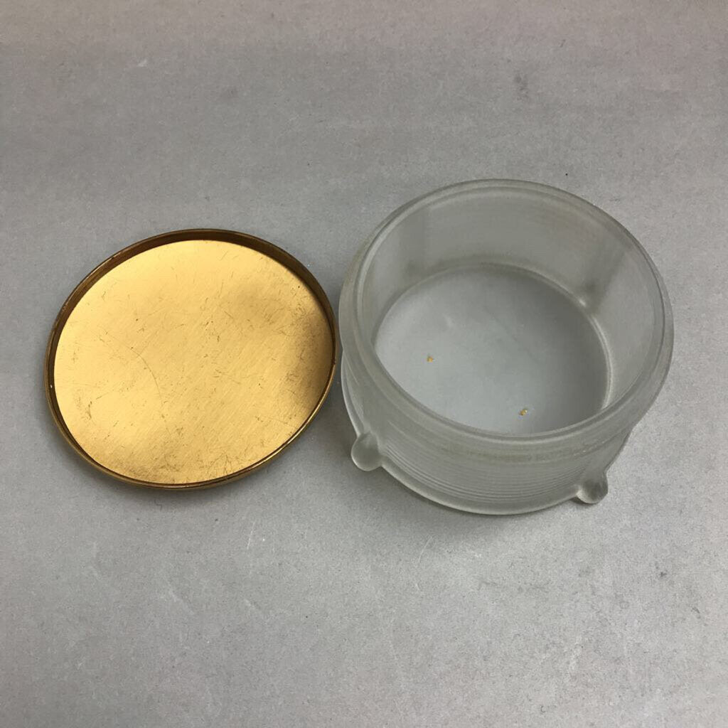 Vintage Art Deco Footed Ribbed Satin Glass Powder Dresser Jar With Metal Lid (2x4)