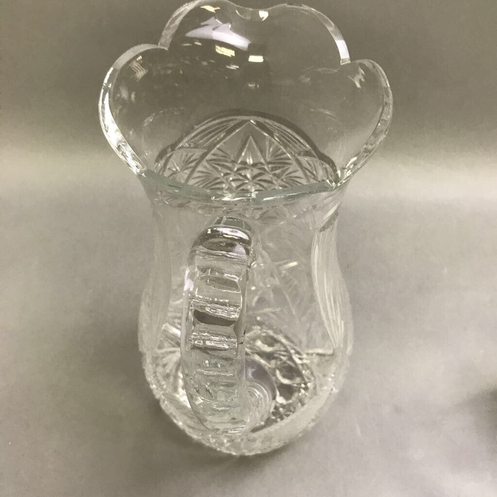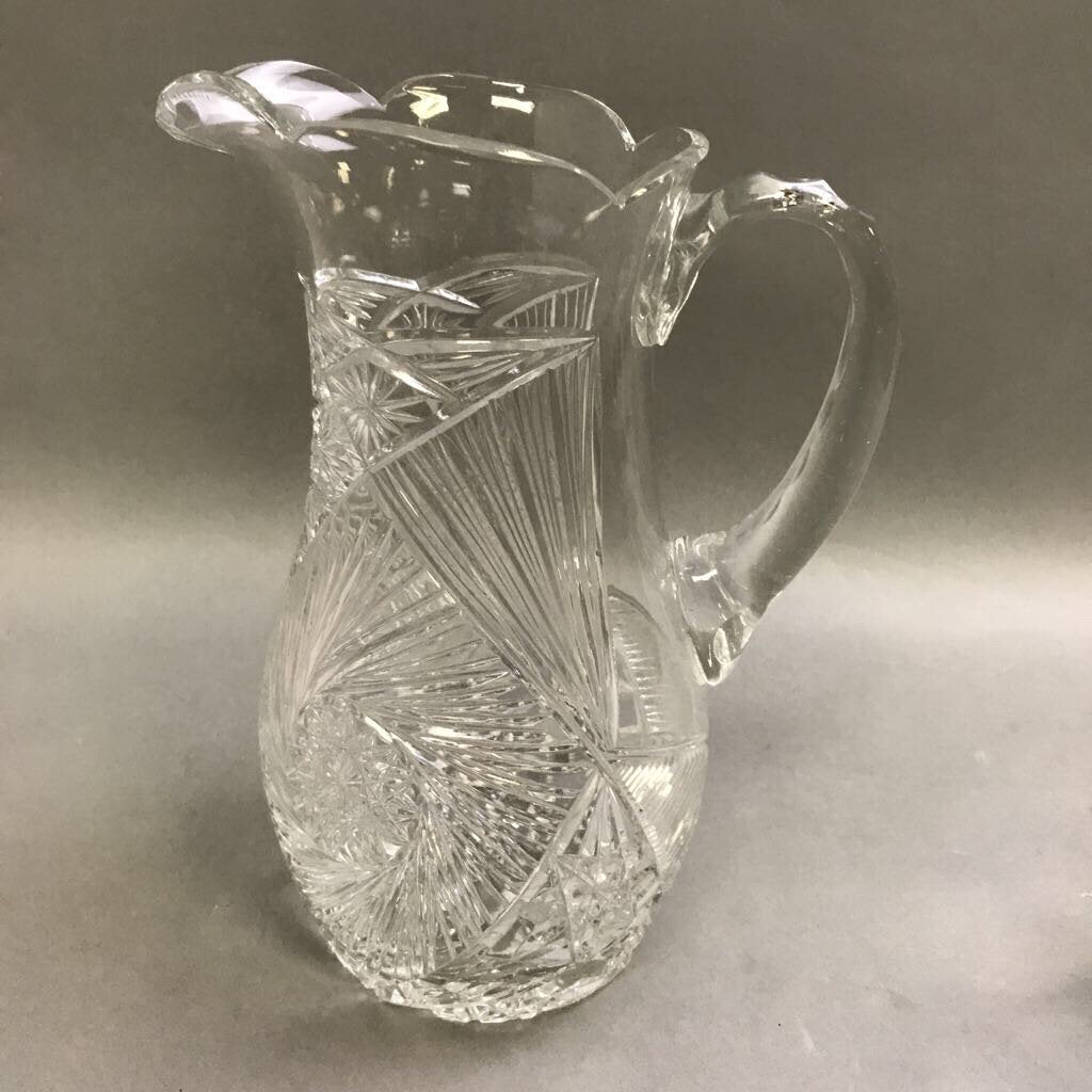Vintage Cut Glass Pinwheel Pitcher with 6 Glasses (10")