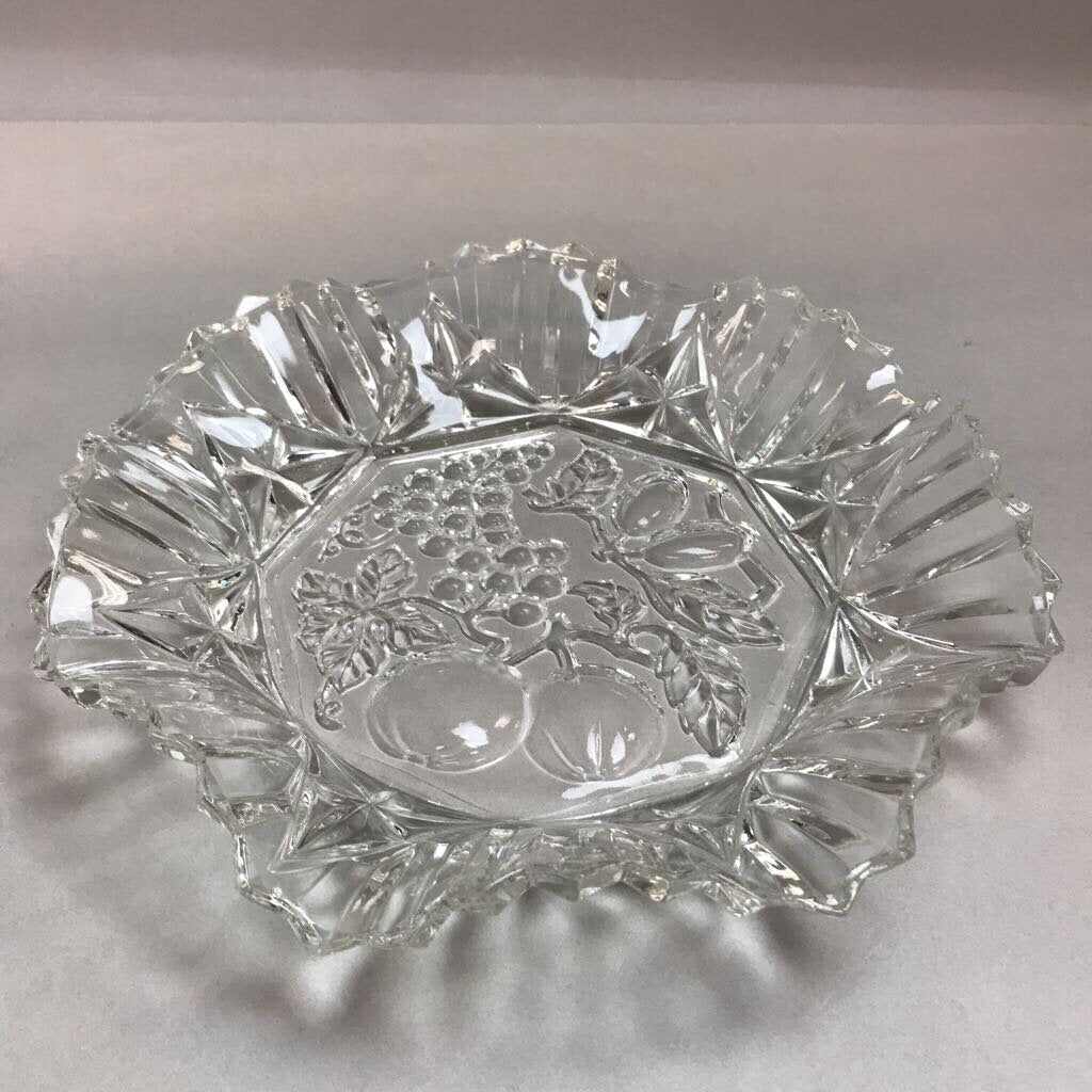 Vintage Federal Glass Ruffled Edged Pioneer Pattern/Intaglio Fruit Design Dish (7")