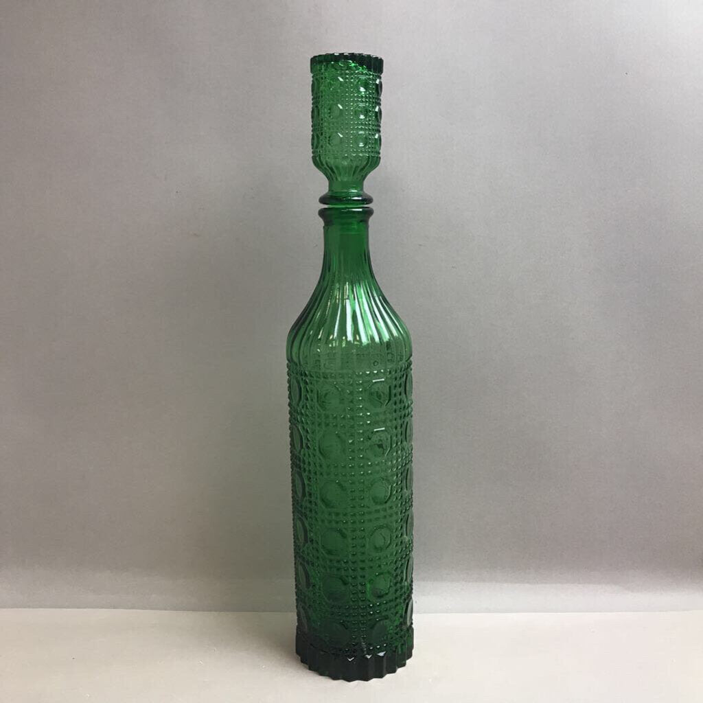 Vintage Green Glass Italian 'Ravioli' Decanter Bottle (17.5")