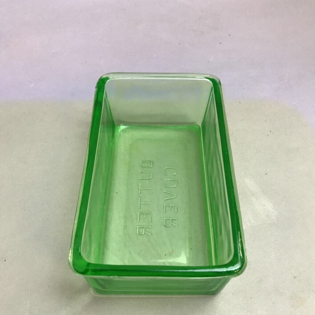 Vintage Hazel Atlas Green Uranium Glass 1lb Butter Cover Lid Only (2x6x3.5)