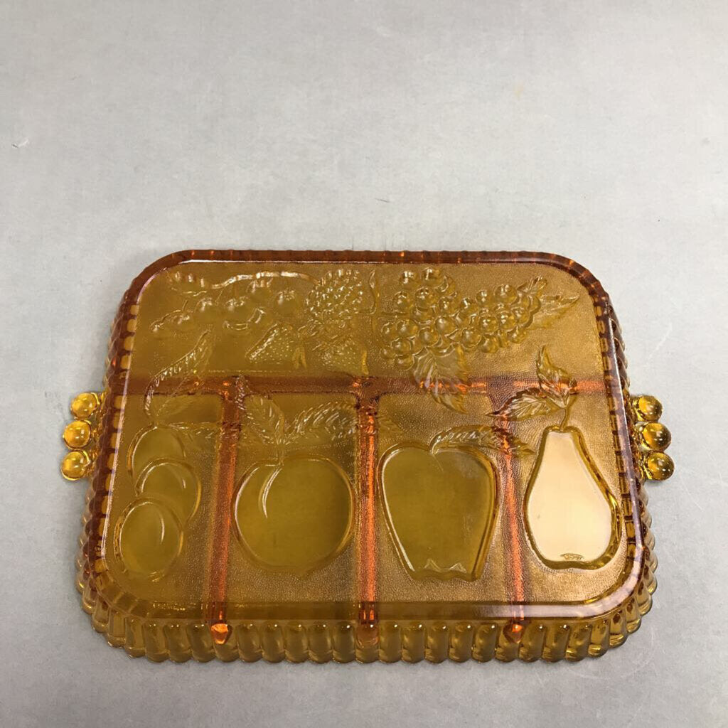 Vintage Indiana Glass Amber Divided 5 Part Relish Serving Dish Fruit Design (1x11x9)