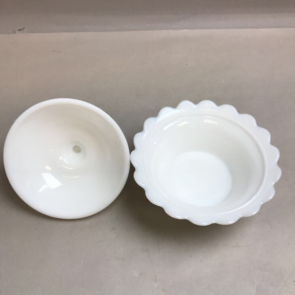 Vintage Kemple Milk Glass Lace & Dewdrop Covered Dish (6")